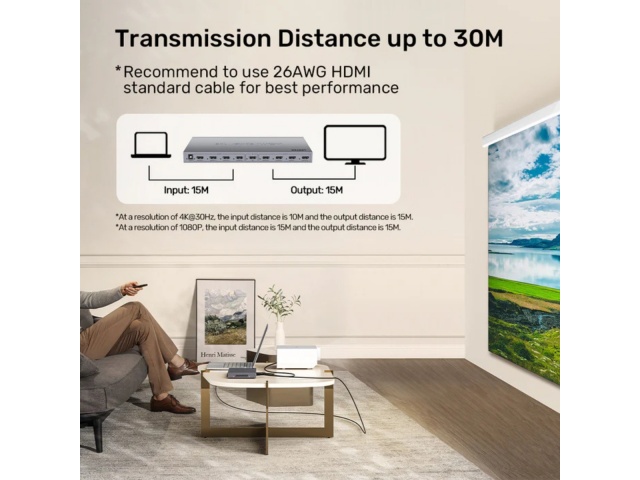 - Distancia de transmisión: Entrada 10M / Salida 15M;Cable estandar 26AWG HDMI)