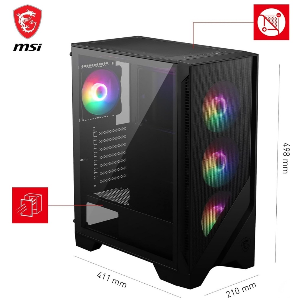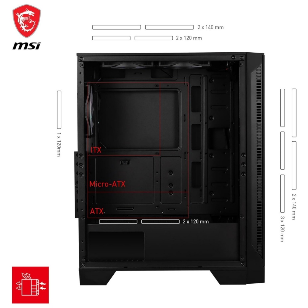 El panel de malla frontal permite que el aire fluya fácilmente hacia el interior de la caja sin obstrucciones, proporcionando el mejor rendimiento de refrigeración del sistema. Este Gabinete ocupa poco espacio pero ofrece un gran rendimiento.