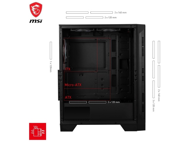 - Arriba: 2 x 120 mm o 2 x 140 mm