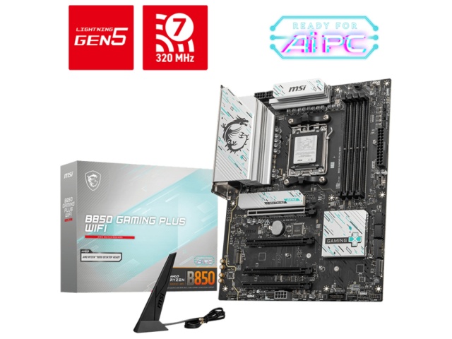 La B850 GAMING PLUS WIFI está diseñada para ofrecer una amplia conectividad, herramientas versátiles y una solución Wi-Fi de primera calidad para los jugadores que buscan una experiencia completa. Con Wi-Fi 7 a máxima velocidad, LAN 5G, solución PCIe 5.0, alimentación PCIe suplementaria y funciones EZ DIY exclusivas, está preparada para jugar sin interrupciones las 24 horas del día, los 7 días de la semana, y está optimizada para los procesadores AMD Ryzen serie 9000.