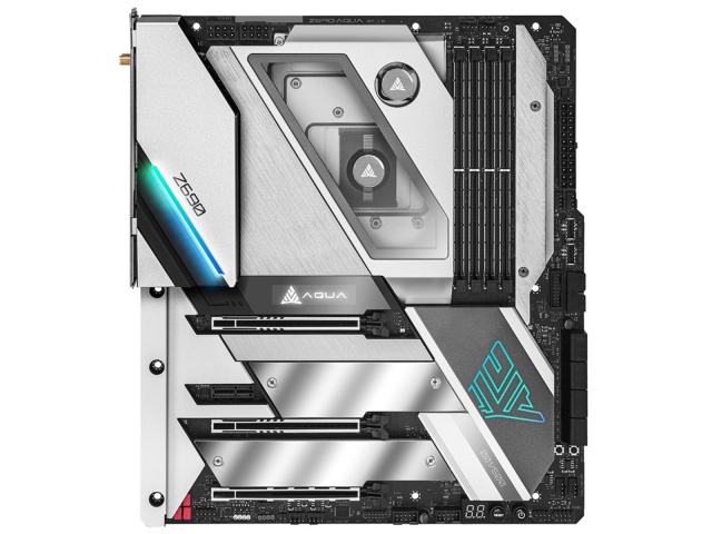 Su característica definitoria, que le da el nombre "AQUA", es su monobloque de refrigeración líquida de cobertura total. A diferencia de otras placas que solo refrigeran la CPU, el monobloque de la AQUA está diseñado a medida para enfriar activamente: