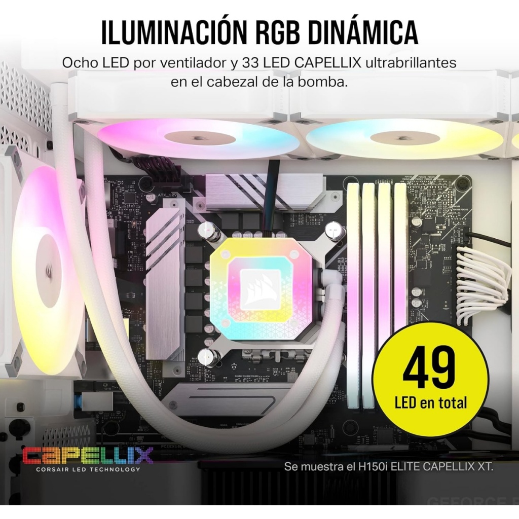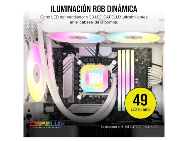 El cabezal de bombeo del refrigerador ELITE CAPELLIX XT aloja 33 LED CAPELLIX ultrabrillantes a juego con sus ventiladores RGB. Cuando añada una refrigeración potente y silenciosa a la combinación, el sistema tendrá un aspecto extraordinario y funcionará aún mejor.
