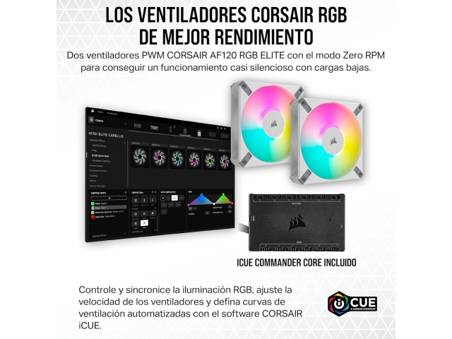 - Ventiladores Incluidos 2x CORSAIR AF RGB ELITE Series