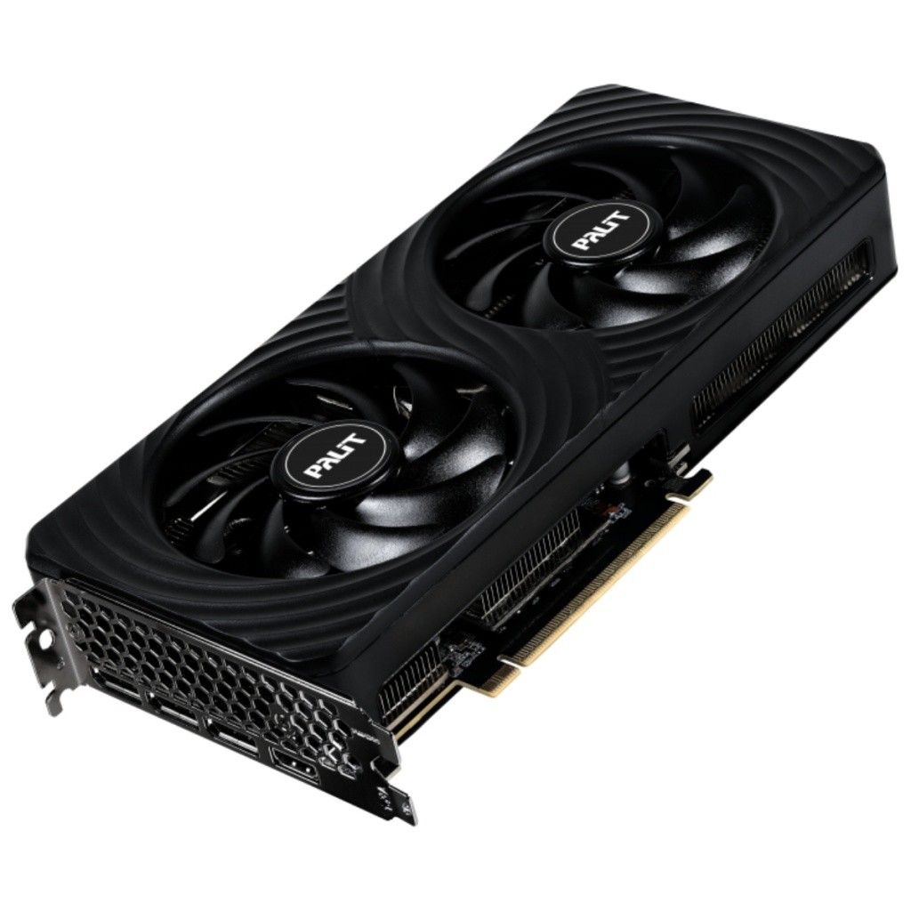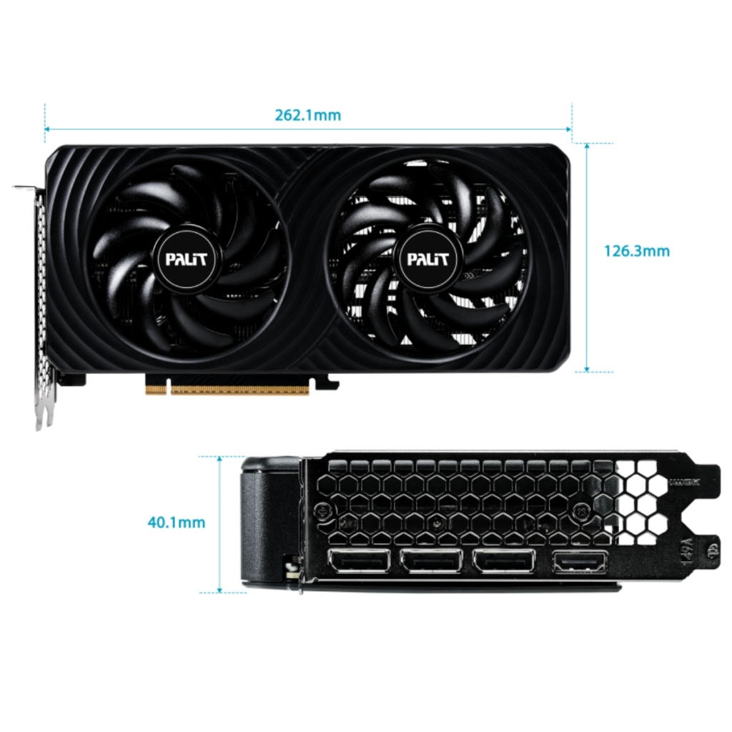 La Palit GeForce RTX 5060 Dual ofrece una eficiencia de enfriamiento clásica en un diseño negro elegante y moderno. Dos ventiladores de 95 mm garantizan una refrigeración eficiente y un funcionamiento silencioso, mientras que su diseño compacto de 2 ranuras es ideal para equipos de formato pequeño. Una placa trasera resistente añade mayor solidez estructural. Disfruta de una sutil iluminación RGB para una estética refinada y personaliza la cubierta con el soporte de Palit Maker sin anular la garantía.