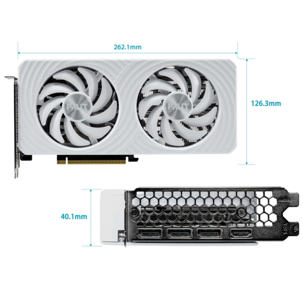 La Palit GeForce RTX 5060 Ti White ofrece una eficiencia de enfriamiento clásica en un diseño blanco, limpio y moderno. Sus dos ventiladores de 95mm proporcionan un enfriamiento potente y silencioso, dentro de un formato compacto de 2 ranuras ideal para gabinetes pequeños. La placa trasera blanca añade resistencia estructural y estilo.