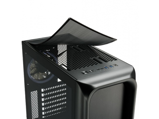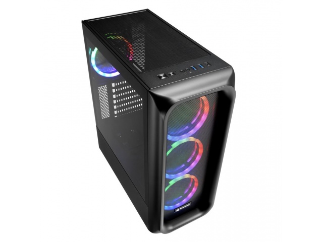 Gabinete con 4 Fanes ARGB incluidos y sistema de rejilla frontal y superior que proporcionan un excelente sistema de refrigeración interna y una estética inigualable.
