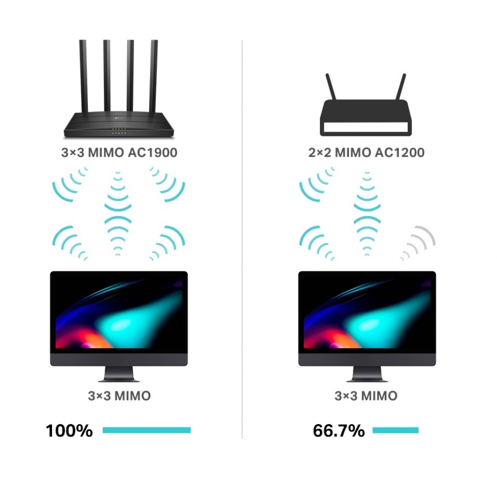 Con MIMO 3×3, el Archer C80 es capaz de transmitir y recibir datos en 3 flujos. Ordenadores 3×3 ? como Macs? emparejan a la perfección con el C80 permitiendo una performance al máximo con una mayor eficiencia que los routers 2×2 MIMO.