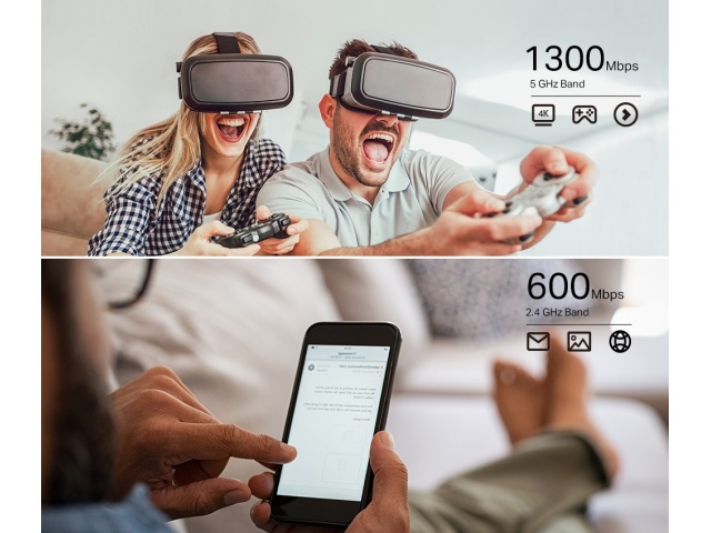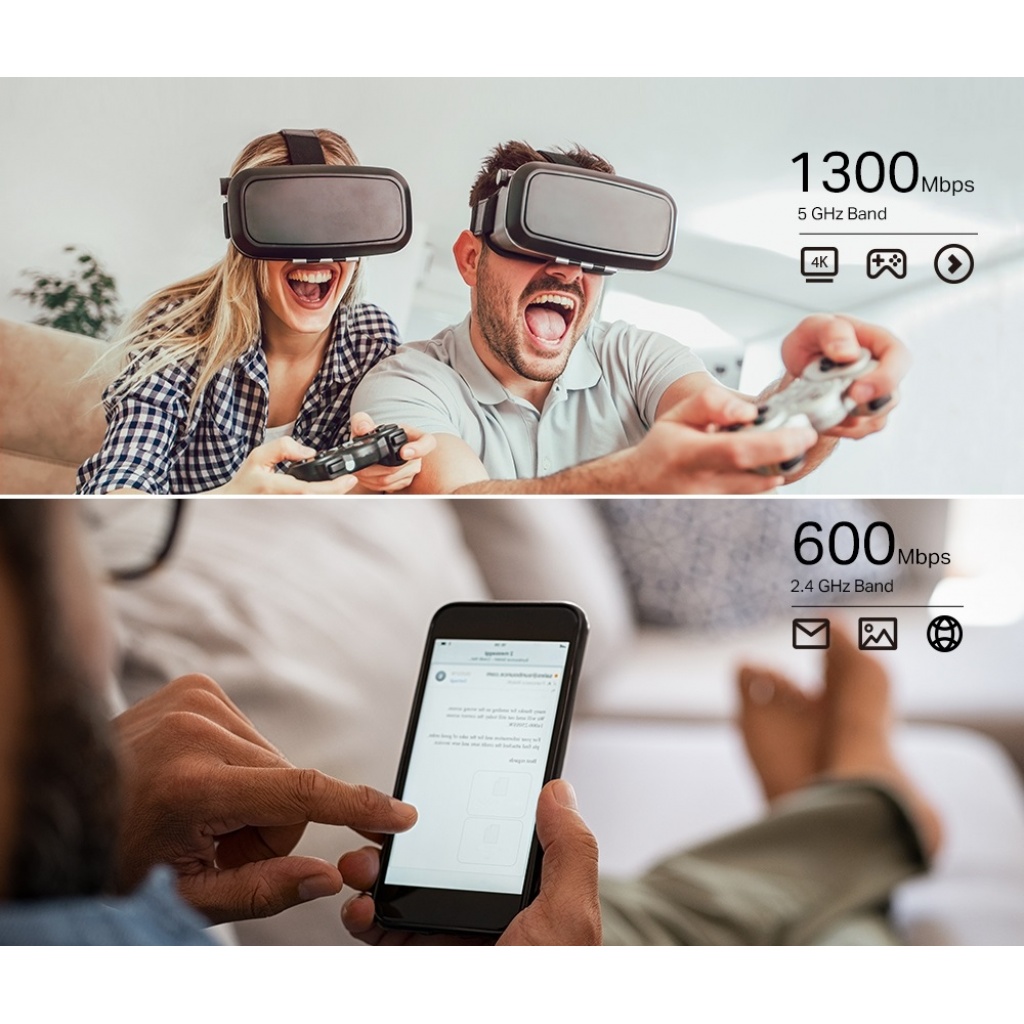 Archer C80 entrega una WiFi de alta performance y económica con velocidades totales de hasta 1900 Mbps. Maneja tareas simples como enviar correos electrónicos o navegar por la web en la banda de 2.4 GHz y tareas intensivas de ancho de banda como juegos en línea o transmisión 4K / 8K UHD en la banda de 5 GHz, todo sin lag.