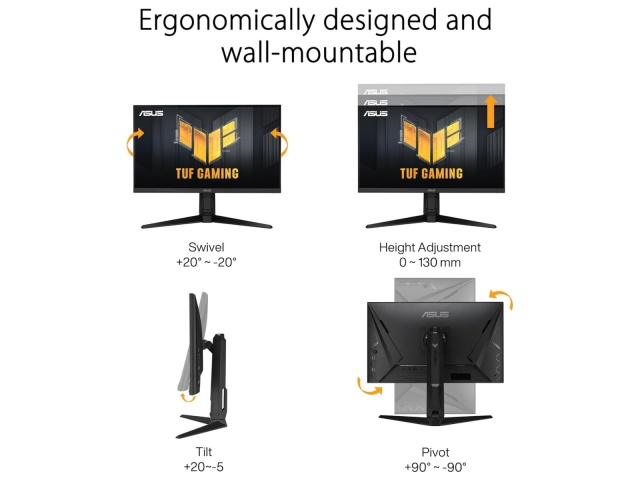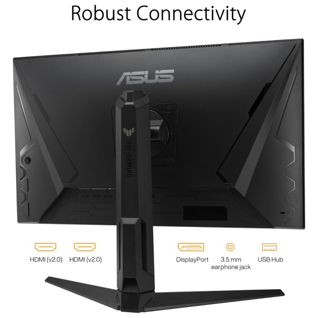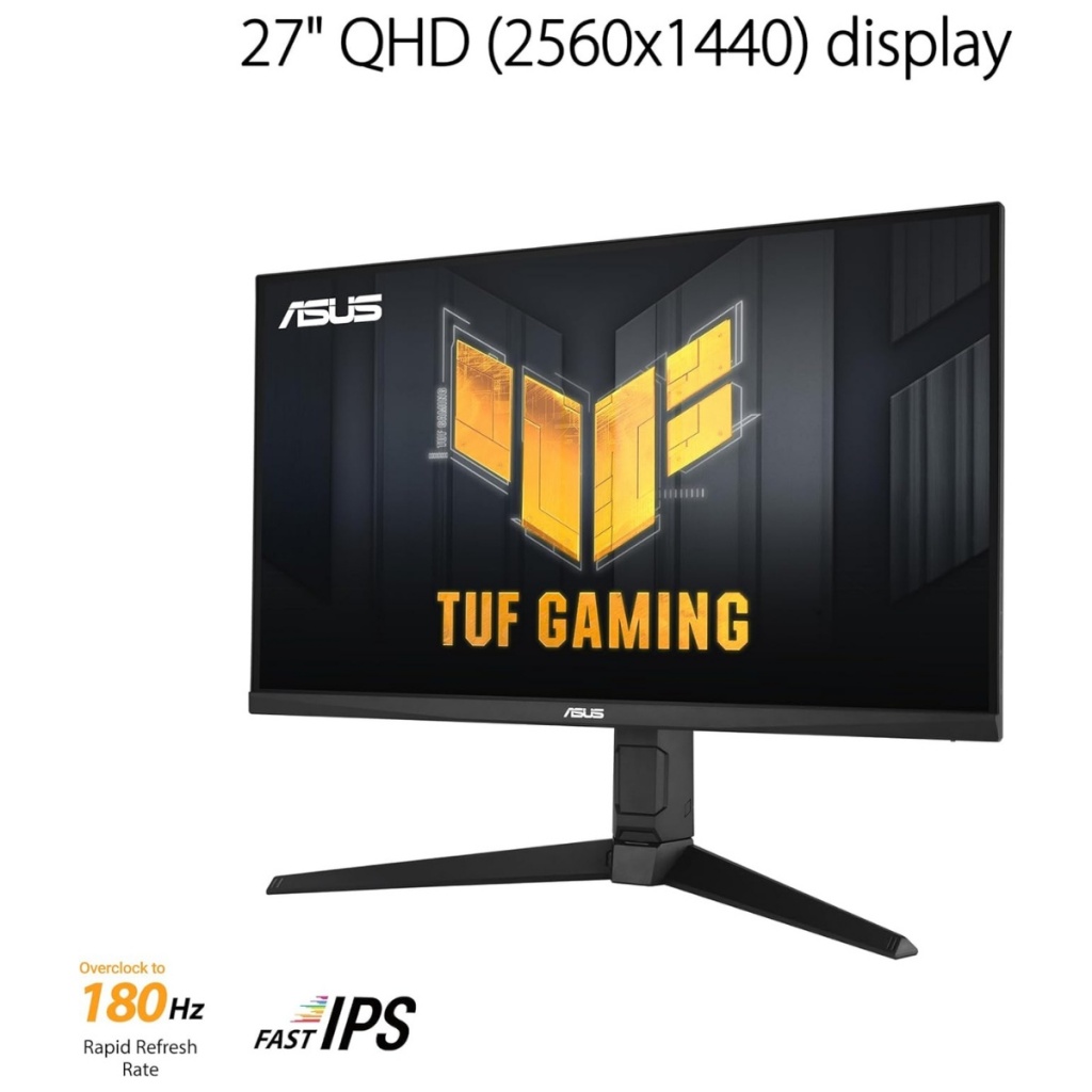 El monitor para juegos TUF Gaming VG27AQL3A QHD de 27 pulgadas incorpora un panel IPS para juegos a una velocidad vertiginosa de 180 Hz. Las tecnologías ASUS Extreme Low Motion Blur Sync (ELMB Sync) y AMD FreeSync Premium, compatible con G-SYNC, y VESA AdaptiveSync permiten jugar con la máxima suavidad. Además, es compatible con HDR y tiene una gama 130% sRGB para ofrecer colores y contraste excepcionales.