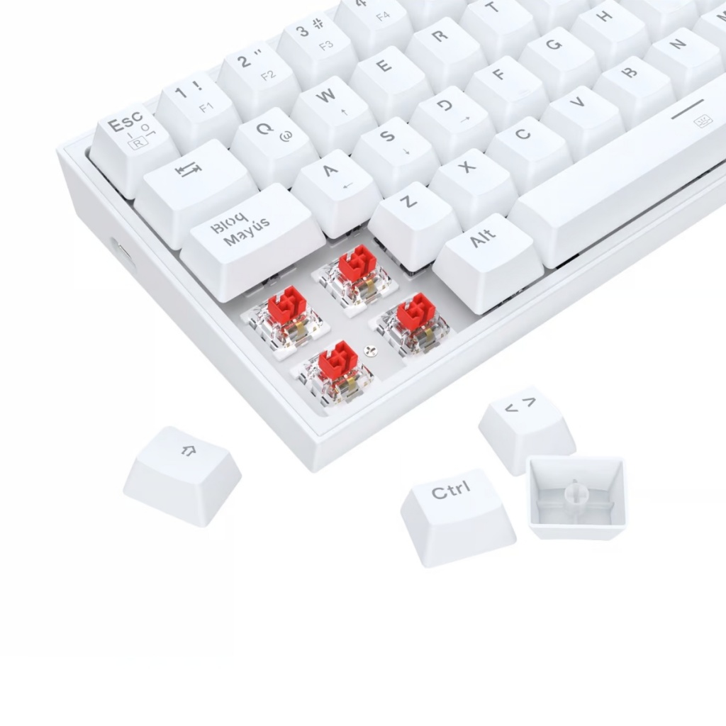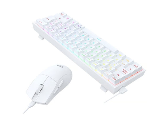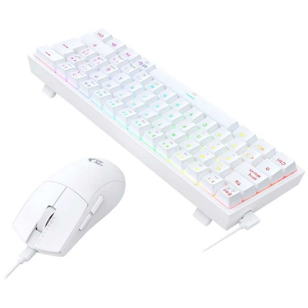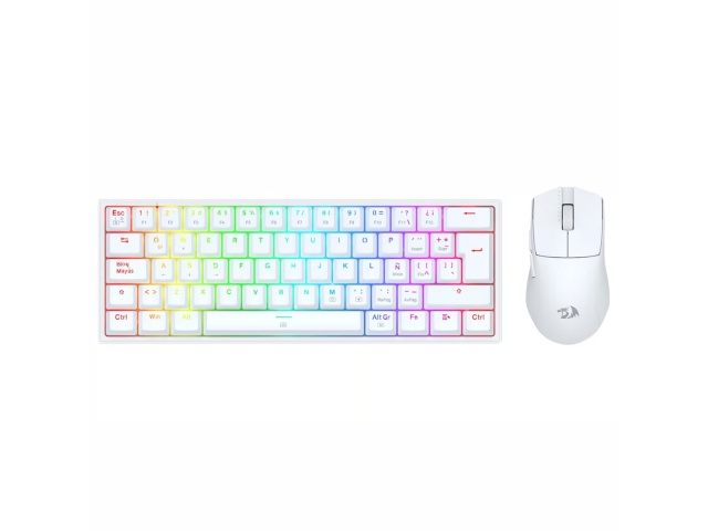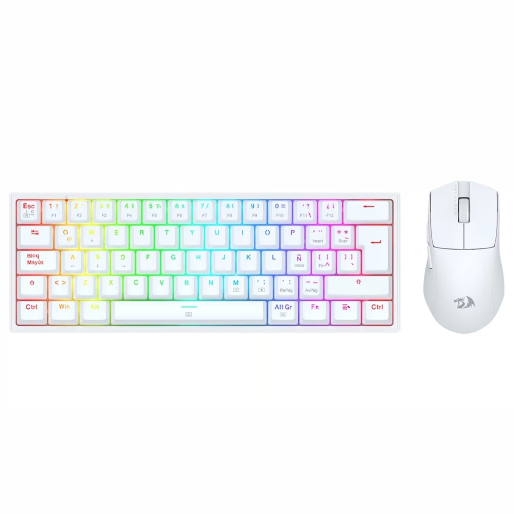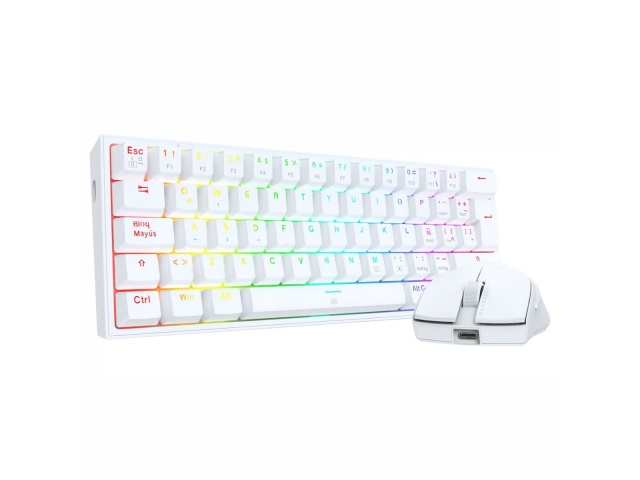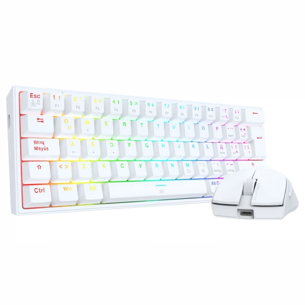 El teclado de este combo es de tamaño compacto 60%, lo que deja mucho más espacio de movimiento al ratón. Está equipado, además, con switches Redragon que soportan hasta 50 millones de pulsaciones y, por ser encapsulados, son resistentes al polvo y las salpicaduras.