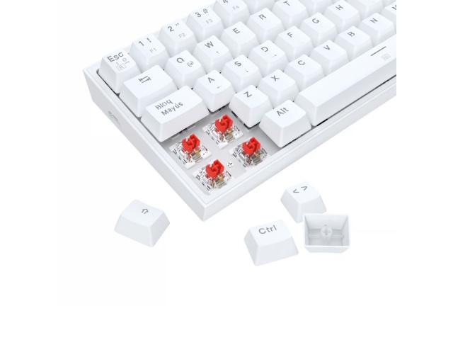 - Switch Redragon Red, Lineal sin click audible , fuerza de actuación 45 gr, Redragon Blue, táctil con click audible, fuerza de actuación 50 gr