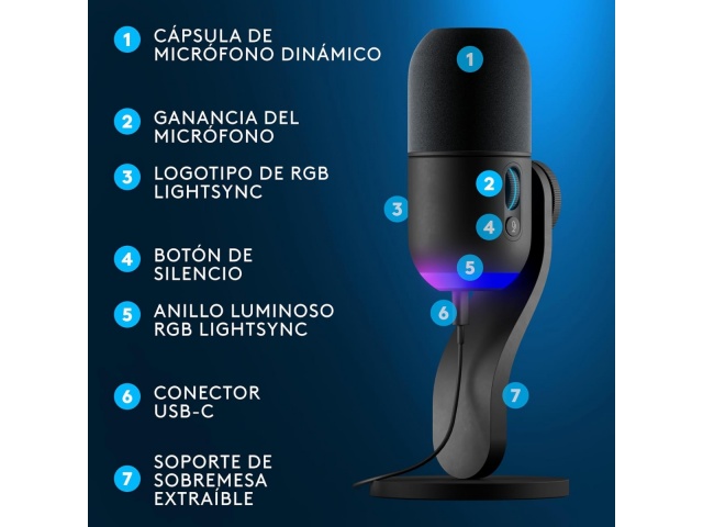 Yeti GX es un micrófono RGB premium para juegos con LIGHTSYNC y diseñado específicamente para streamers de juegos. Combinando una cápsula dinámica personalizada con software avanzado, este micrófono USB rechaza el ruido y los clics de las teclas, mejora el sonido y garantiza un audio de alta calidad constante mientras transmite.
