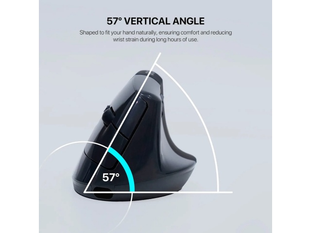 - Diseño vertical ergonómico con ángulo de 57°, que reduce la tensión en la muñeca y mejora la postura natural de la mano