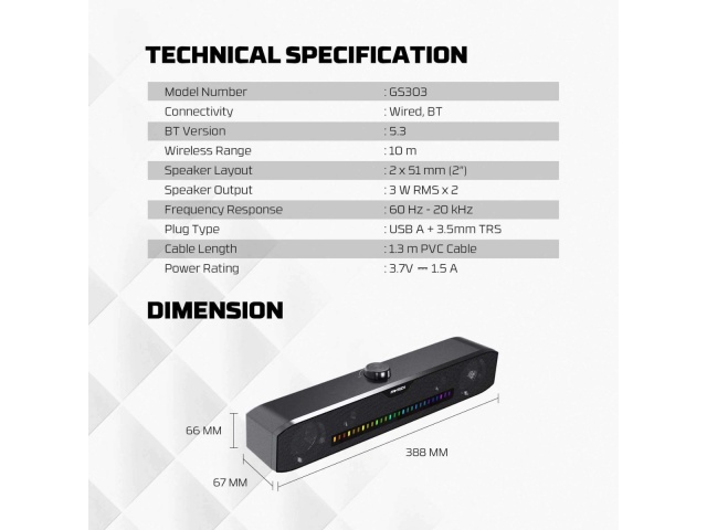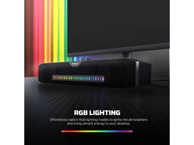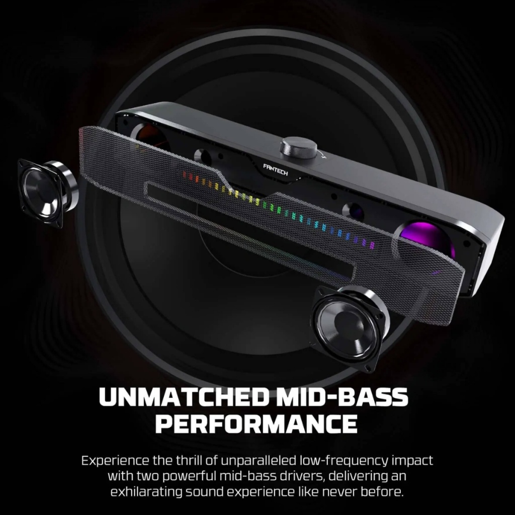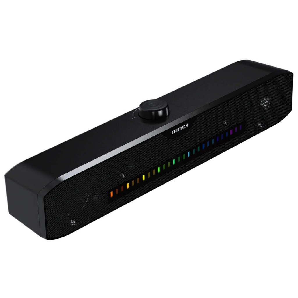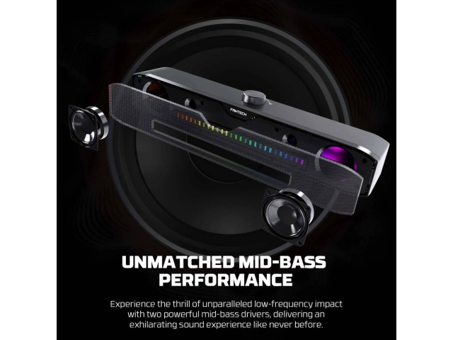 El Fantech GROOVE BAR GS303 es una barra de sonido compacta y elegante diseñada principalmente para jugadores y entusiastas del multimedia. Ofrece una solución de audio versátil con conectividad dual, que te permite conectar dispositivos tanto de forma inalámbrica a través de Bluetooth como por cable. Su diseño estilizado está pensado para encajar perfectamente debajo de un monitor, ahorrando espacio en el escritorio. Además, cuenta con iluminación RGB para crear una atmósfera de juego inmersiva y una perilla de control de volumen independiente para un ajuste fácil y rápido.