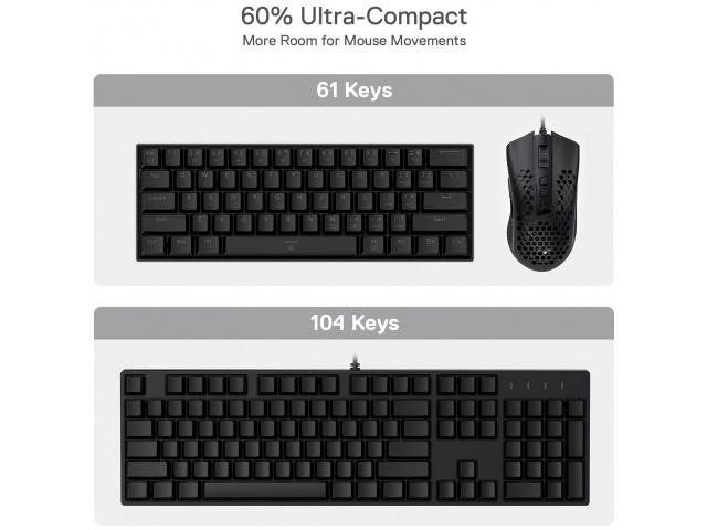 El espacio que el Dragonborn ahorra en tu escritorio es el espacio que gana el ratón. Por esa razón los teclados 60% son tan requeridos por jugadores de todo el mundo: para juegos tipo FPS, por ejemplo, en los que la movilidad del ratón es tan importante, un pequeño guerrero como el Dragonborn puede brindarte muchas soluciones.