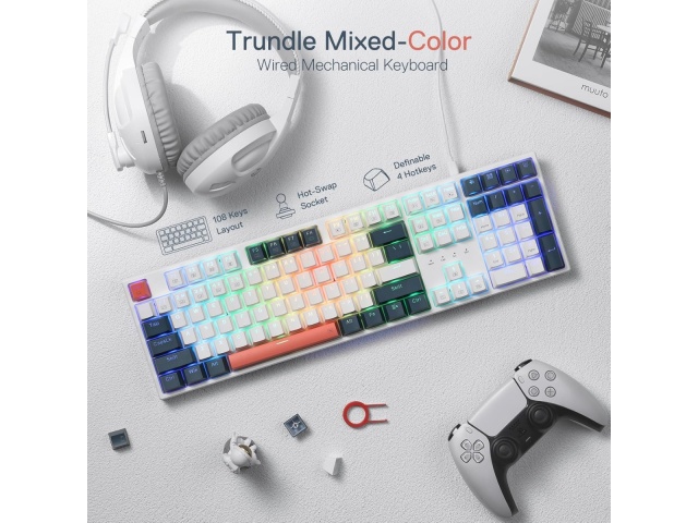 Cuando el juego o el trabajo exigen todo, el Trundle responde con creces. Su diseño full size con 4 teclas de acceso rápido, sus switches Red con sockets ultra hot-swap y su estructura con capa de amortiguación interna ofrecen una experiencia de uso realmente suave, silenciosa y veloz.