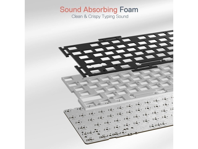 - Extras: espuma absorbente de sonido de 3,5 mm, patas ajustables, keycaps tricolor