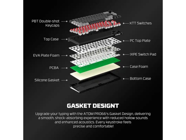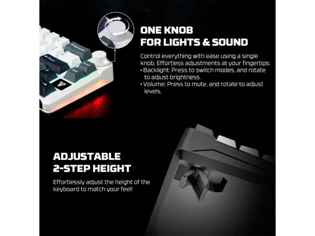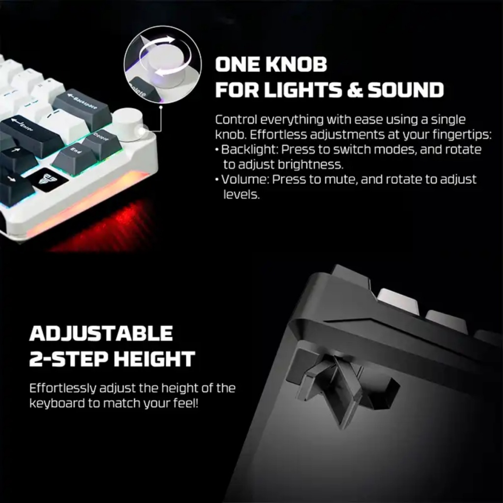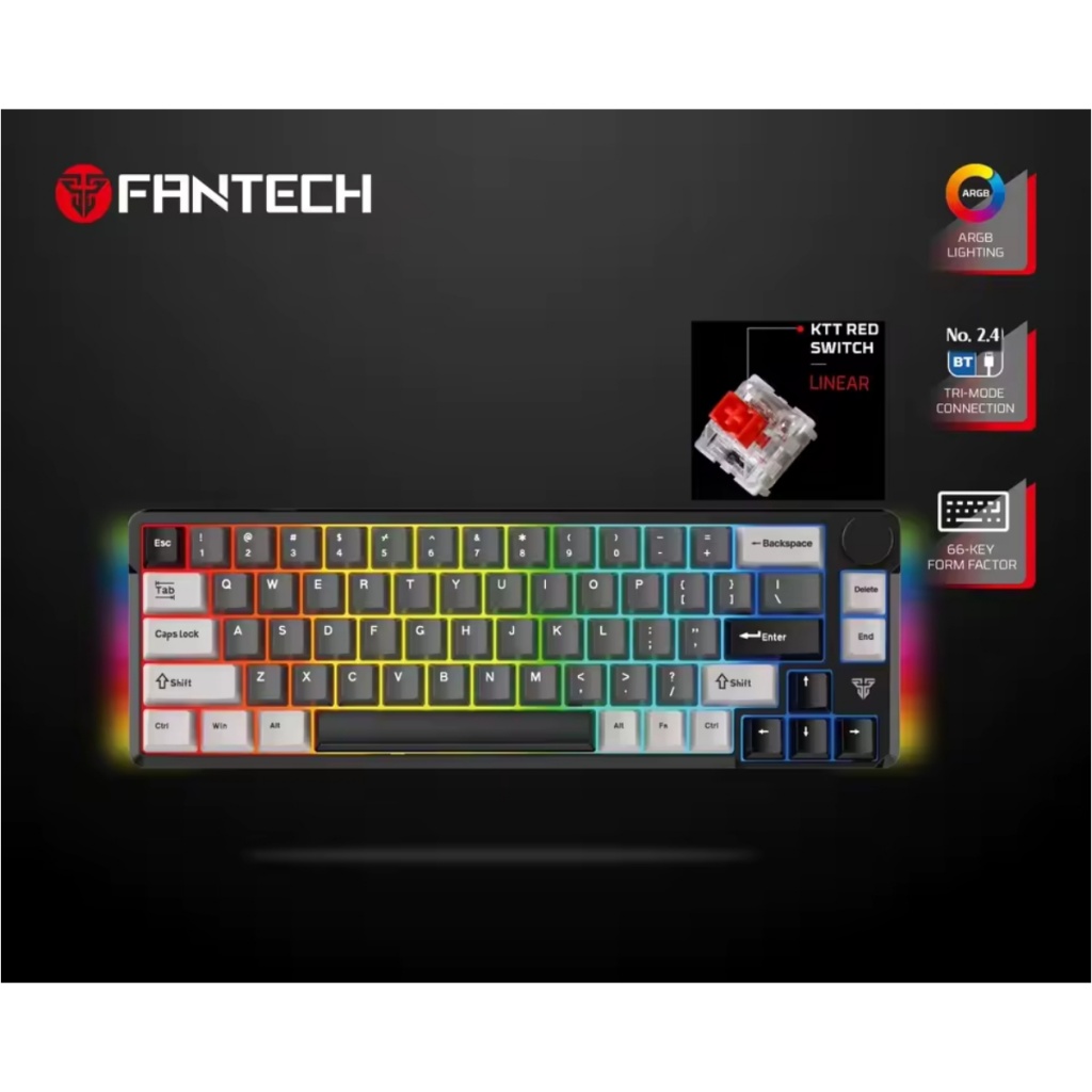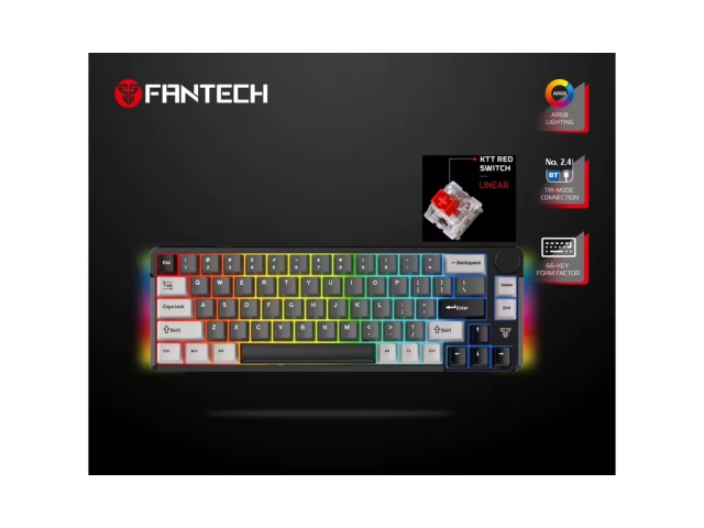 El FANTECH ATOM PRO 66 (MK919) es un teclado mecánico compacto y versátil, diseñado para entusiastas de los videojuegos, programadores y usuarios que buscan un periférico de alto rendimiento con múltiples opciones de conectividad y personalización.