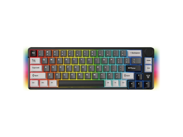 Diseño Compacto 65%: Con 66 teclas, este teclado ahorra un espacio considerable en el escritorio al omitir el teclado numérico y algunas teclas de función, manteniendo las teclas de flecha esenciales para una mayor funcionalidad.