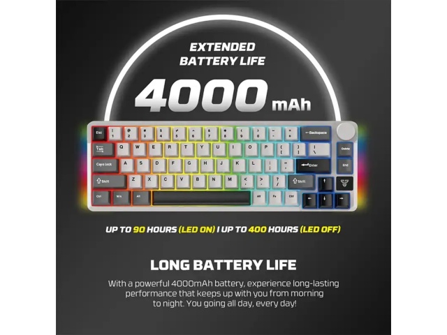 Interruptores Mecánicos Hot-Swappable: Equipado con interruptores mecánicos (comúnmente Huano Red o Blue), permite a los usuarios cambiar los switches sin necesidad de soldadura. Esto facilita la personalización de la sensación de escritura y el sonido del teclado.