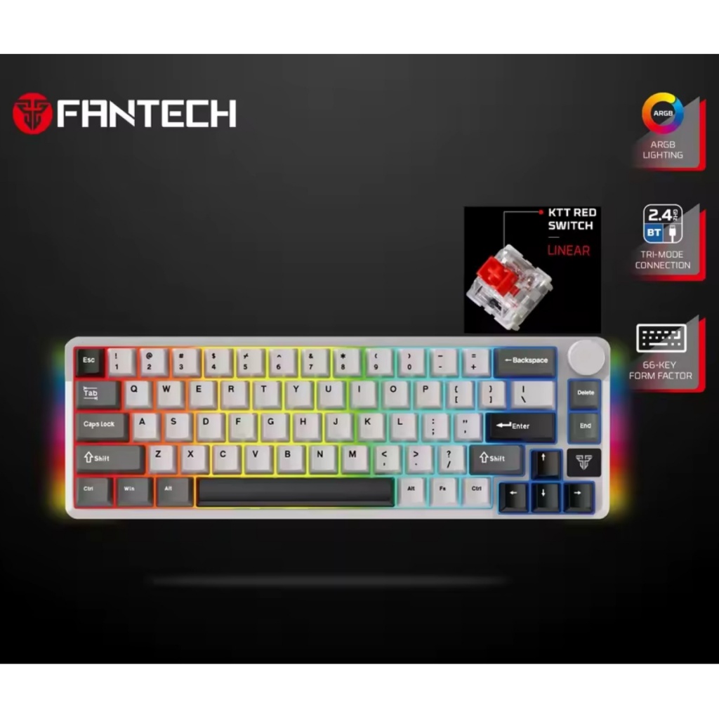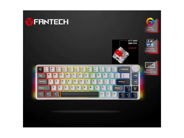 El FANTECH ATOM PRO 66 (MK919) es un teclado mecánico compacto y versátil, diseñado para entusiastas de los videojuegos, programadores y usuarios que buscan un periférico de alto rendimiento con múltiples opciones de conectividad y personalización.