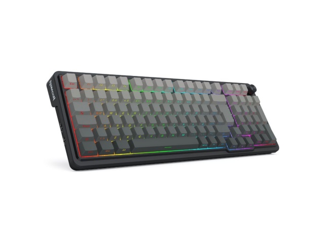 El Eisa Max es un teclado mecánico de formato 98% con triple conexión, amortiguación gasket, compatibilidad Windows/Mac, rueda de control y batería de duración extra larga. Cuenta también con iluminación RGB Chroma y un encanto retro irresistible.