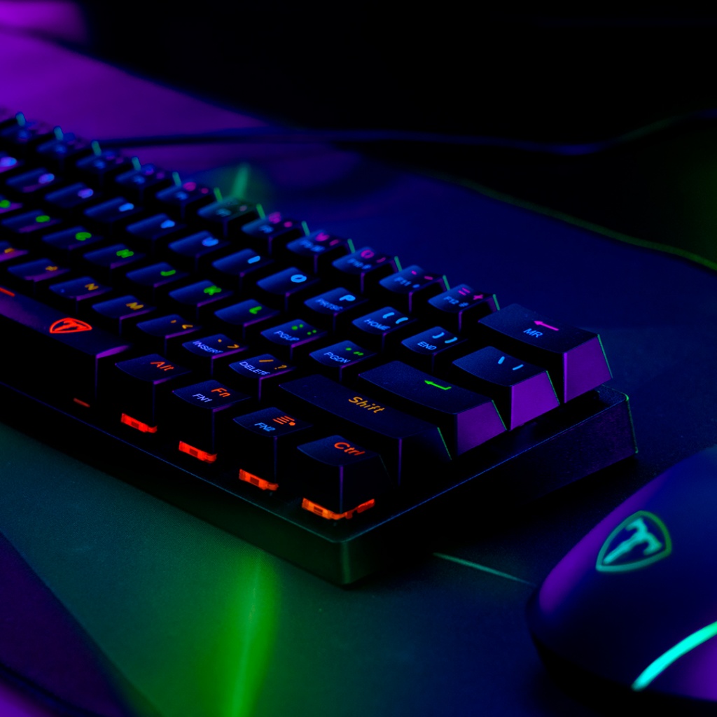 El Arena es un teclado mecánico 60% con muchísimo poder de juego y una enorme versatilidad. Con sólo 61 teclas, le concede la mayor libertad posible al ratón sin ceder una pulgada en funcionalidad. Es completamente transportable, perfecto para llevarlo a todas partes y utilizarlo en diferentes dispositivos; es un competidor temible, con interruptores mecánicos de alto nivel y todas las funciones necesarias para el juego; y es tan devastadoramente bonito que, cuando lo recibas, tu cara se verá así: UwU.