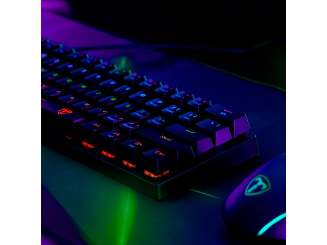 El Arena ahorra valioso espacio sobre el escritorio, pero ciertamente no ahorra en luz y color. Está equipado con 18 efectos de iluminación entre los que puedes alternar rápidamente: 1.Fijo, 2.Respiración, 3.Ola, 4.Doble Ola, 5.Intersección, 6.Reactivo total, 7.Reactivo en línea, 8.Reactivo por tecla, 9.Reactivo en Ola, 10.Huracán, 11.Snake, 12.Escalonado, 13.Zig-Zag, 14.Tiempos digitales, 15.Dejando rastro, 16.Lado a lado, 17. Acumulada, 18.Coastal