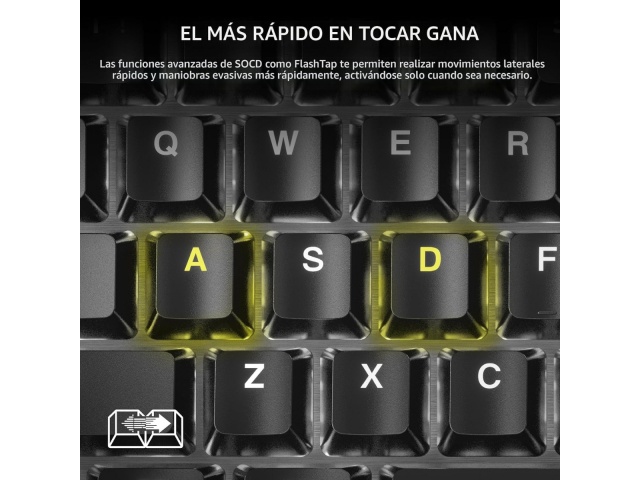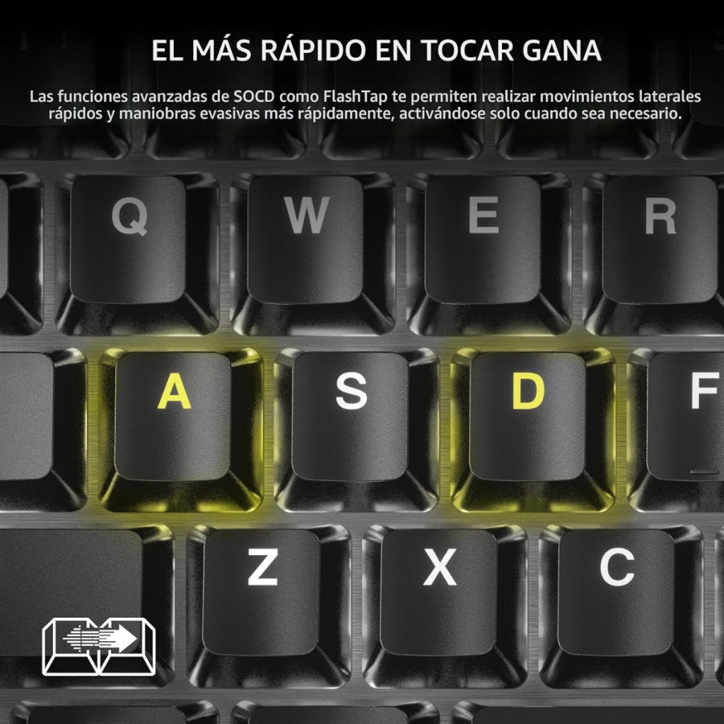 Tecnología FlashTap: Compatible con funciones avanzadas de prioridad de teclas (SOCD), útil en juegos competitivos para movimientos rápidos y precisos.