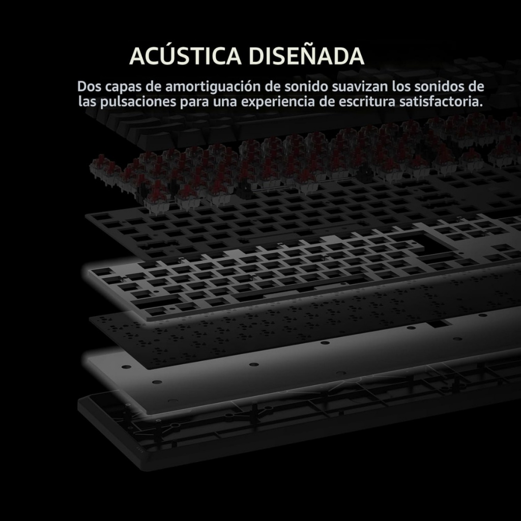 Acústica Optimizada: La combinación de la placa de aluminio y las capas internas de espuma EVA reduce las vibraciones y el ruido interno del chasis.