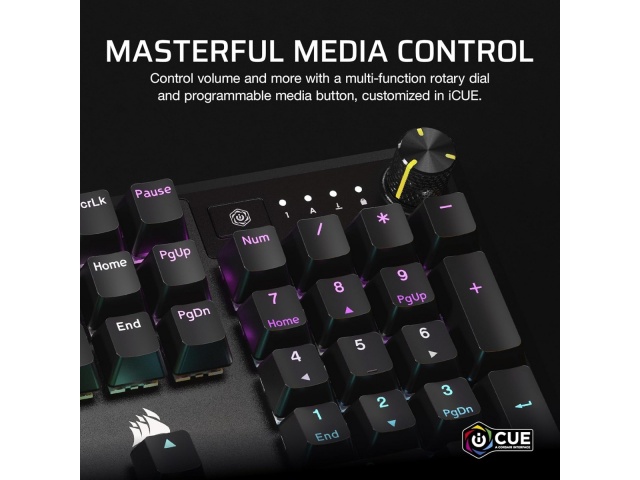 - Iluminación RGB dinámica por tecla, personalizable vía iCUE
