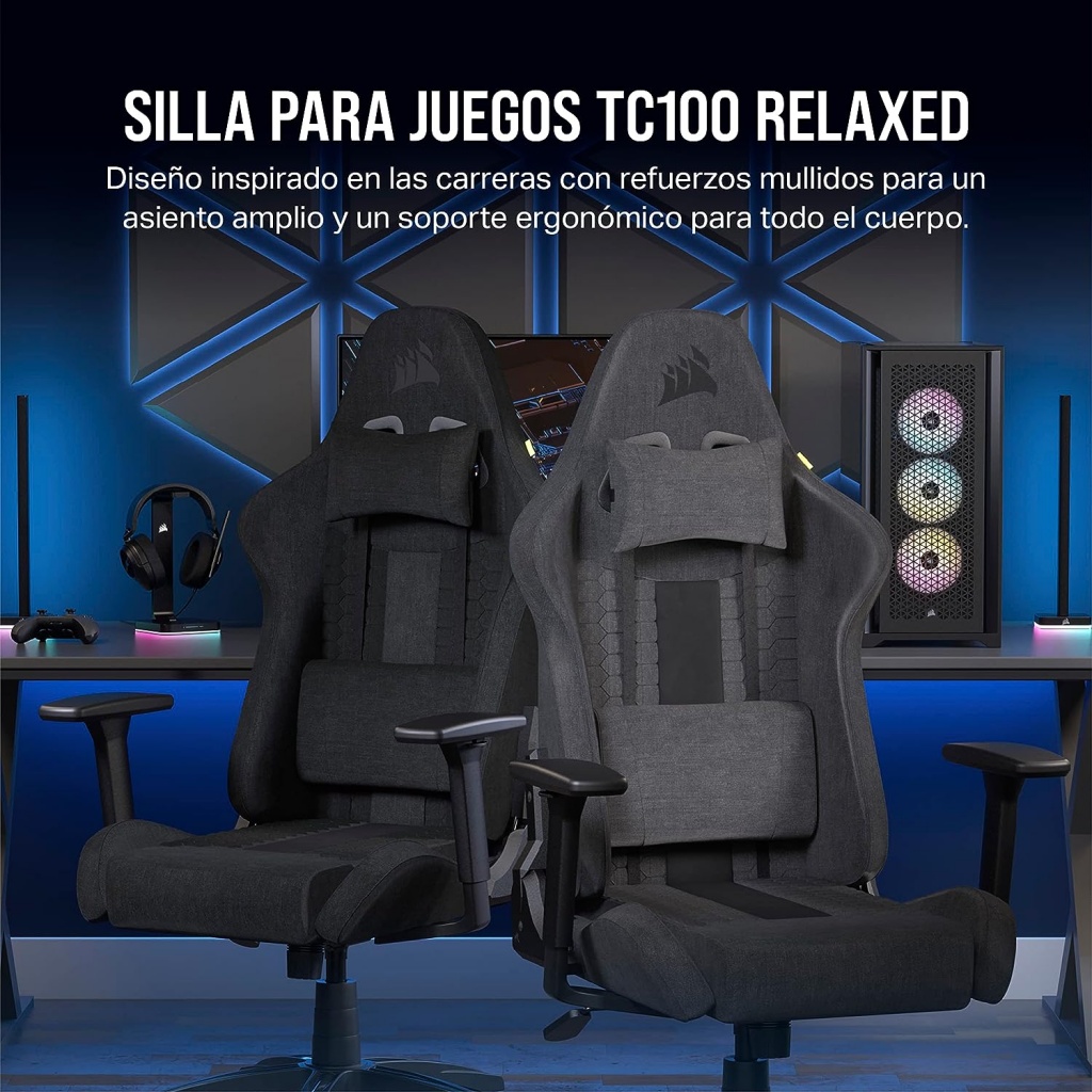 Silla Gamer Corsair TC100 Relaxed Fabric Tela Comoda y Duradera 120Kg - Negro