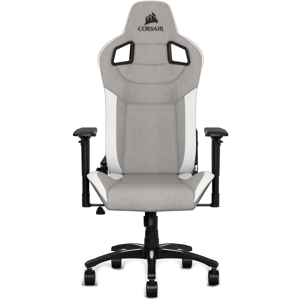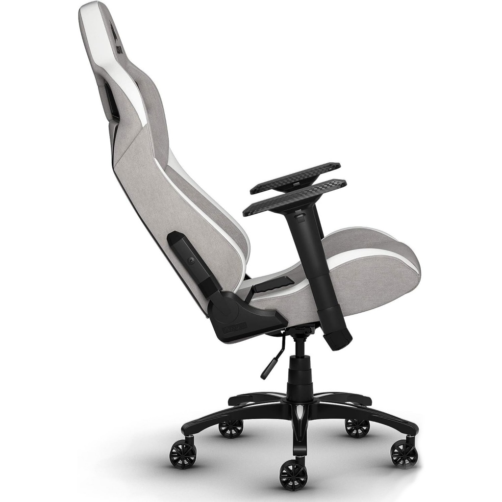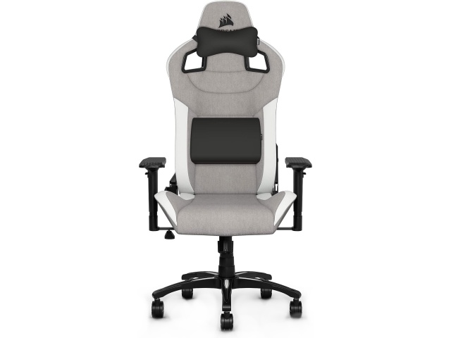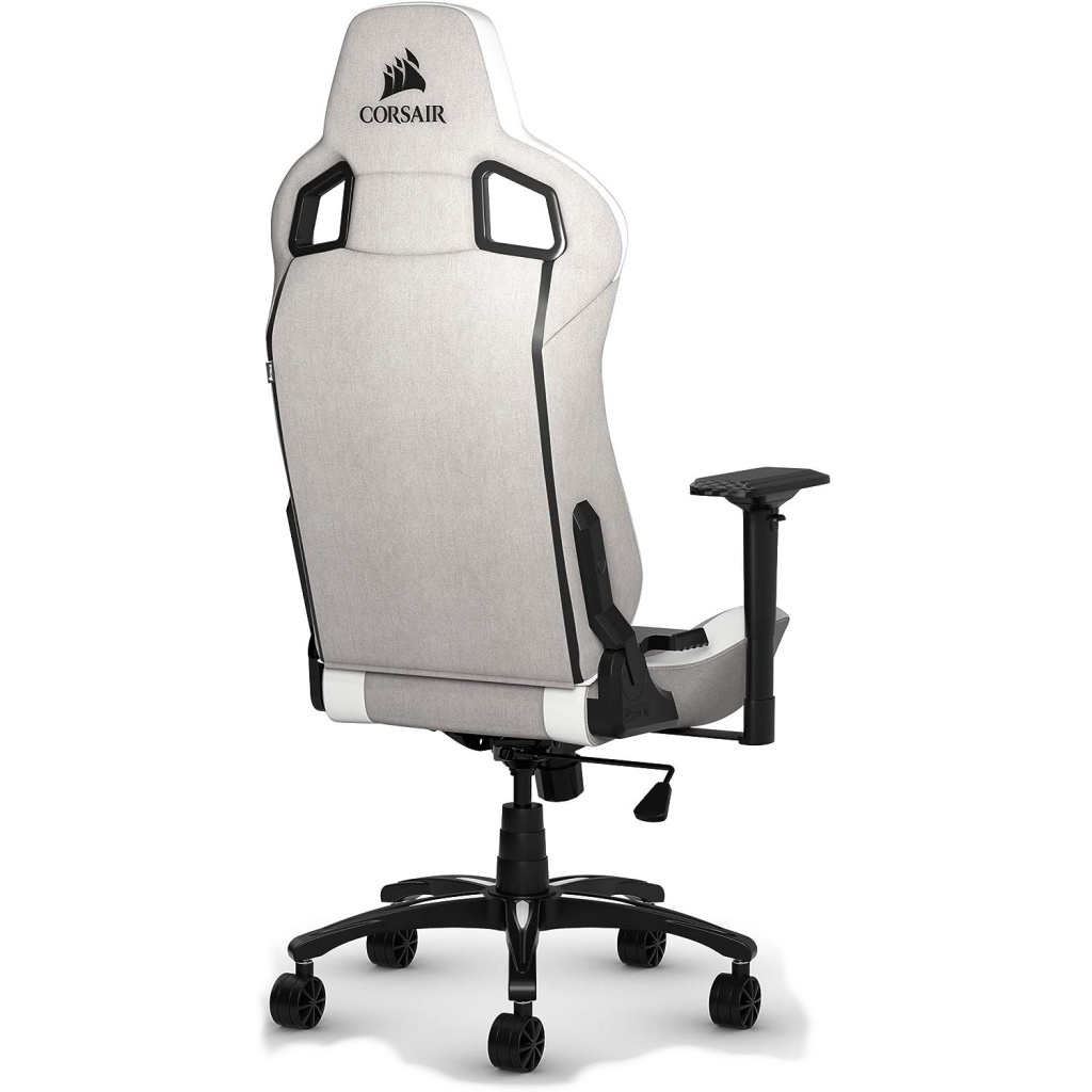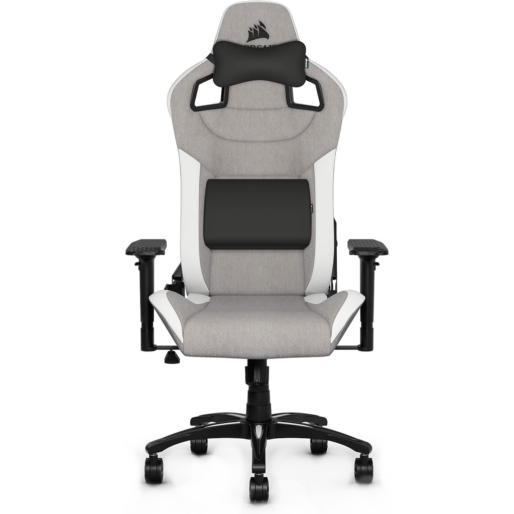 La silla de juegos CORSAIR T3 RUSH combina un diseño inspirado en las carreras y una comodidad contorneada con un exterior de tela suave y transpirable, una almohada cervical acolchada y un soporte lumbar de espuma viscoelástica.