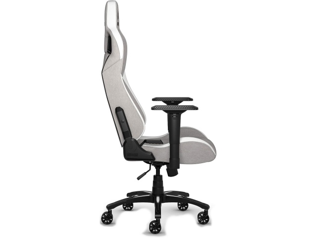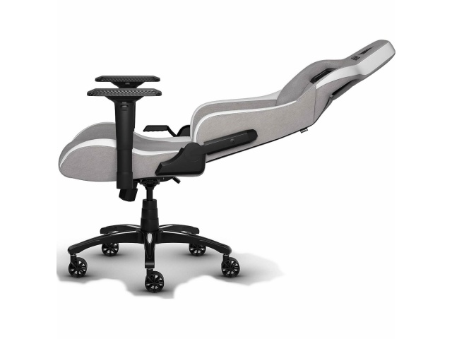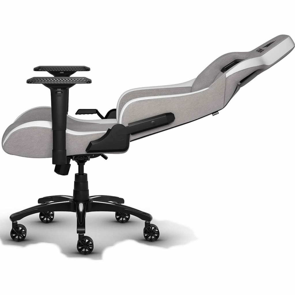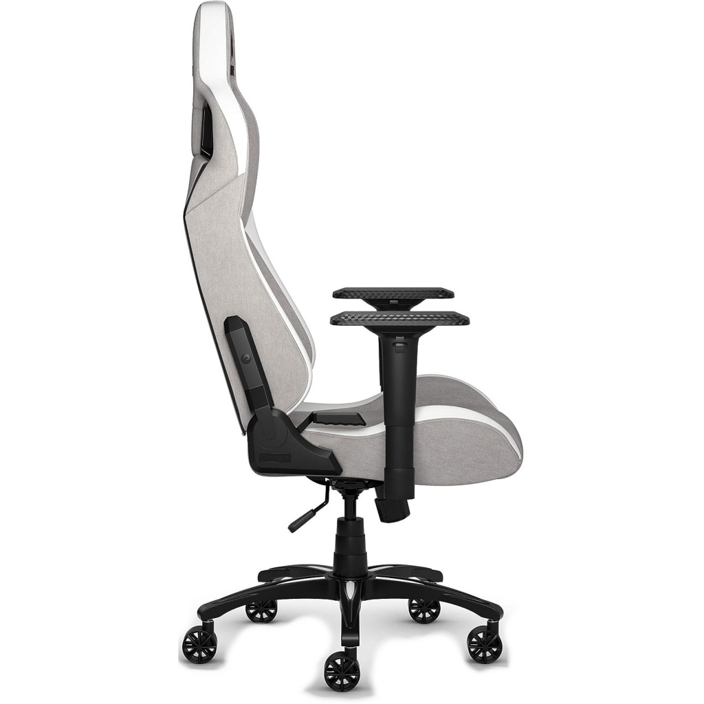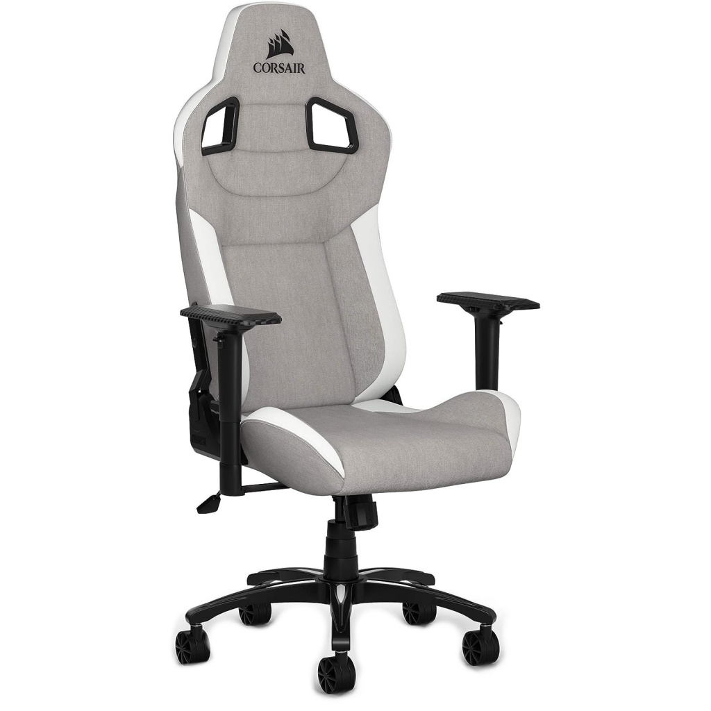 La silla de juegos CORSAIR T3 RUSH combina un diseño inspirado en las carreras y una comodidad contorneada con un exterior de tela suave y transpirable, una almohada cervical acolchada y un soporte lumbar de espuma viscoelástica.