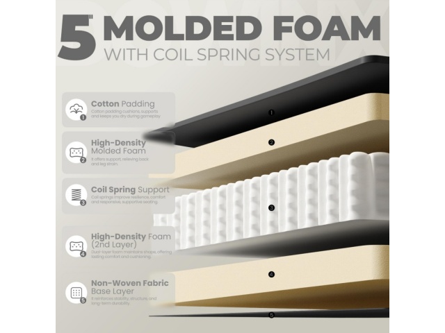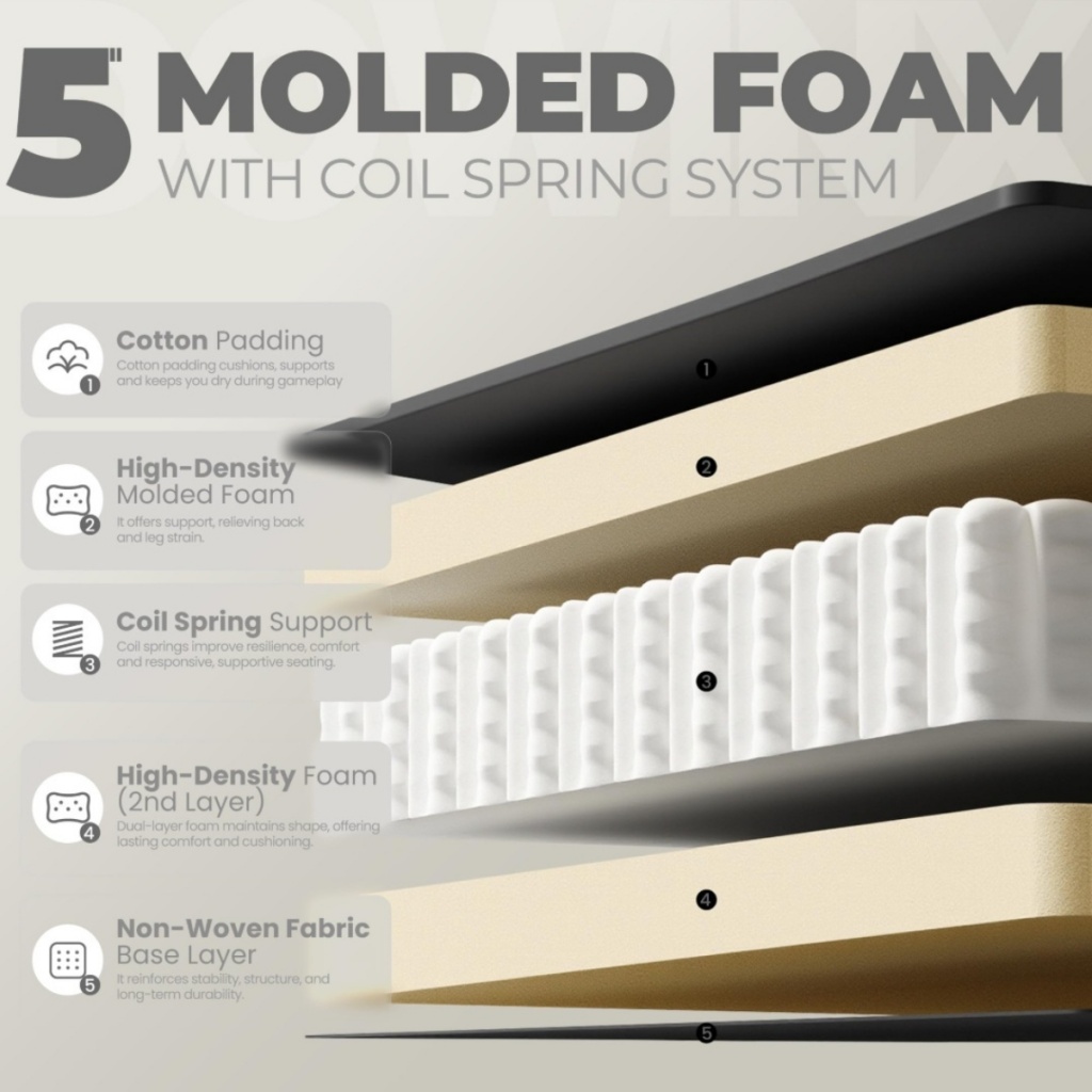 La silla cuenta con espuma de alta densidad reforzada con sistema de resortes individuales tipo pocket que ofrecen un soporte firme y cómodo, manteniendo la forma y aliviando la tensión de espalda y piernas. Su base reforzada garantiza estabilidad y durabilidad a largo plazo.