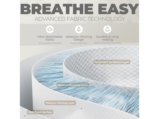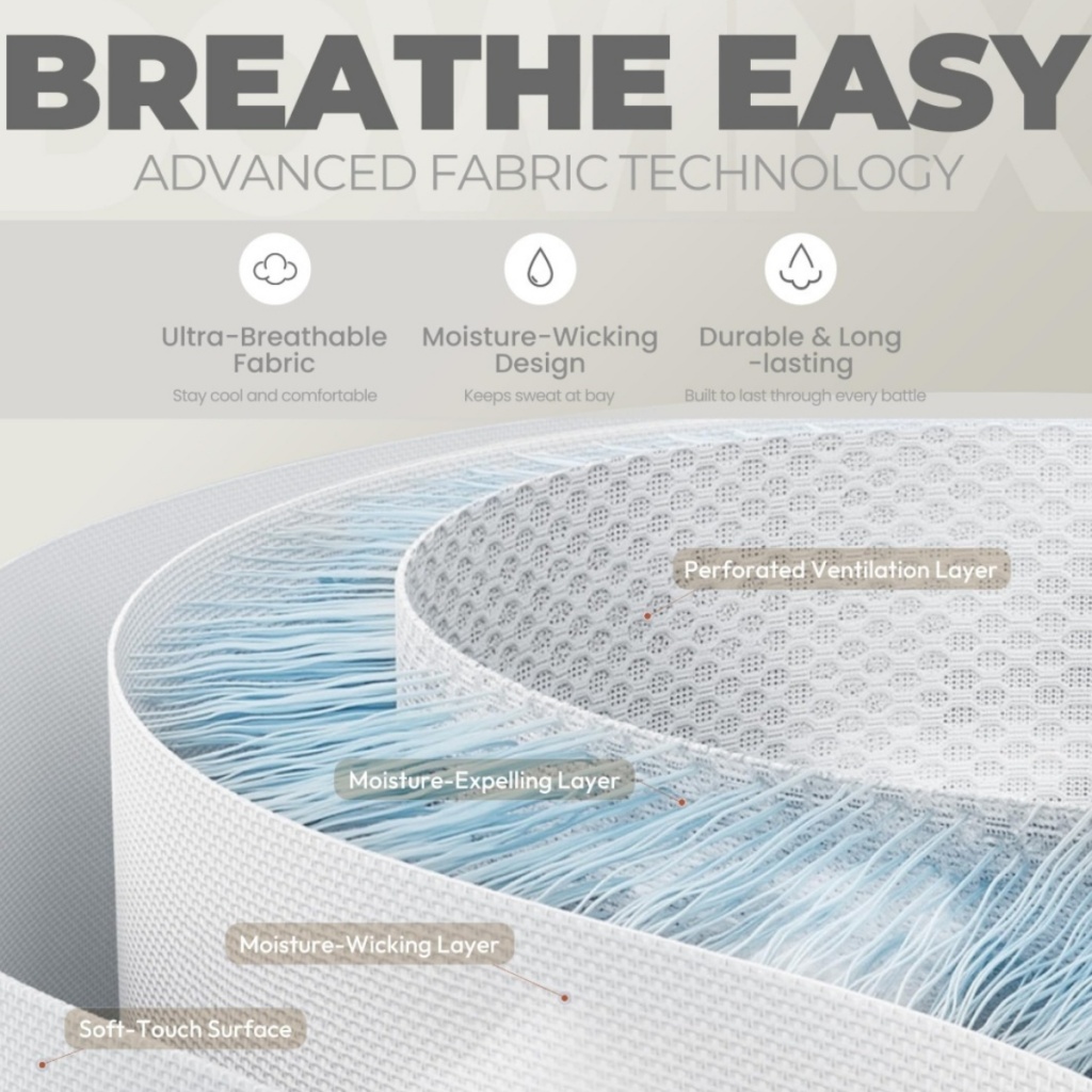 La silla incorpora tela avanzada ultra transpirable que mantiene la frescura y comodidad durante largas sesiones, absorbiendo y expulsando la humedad para controlar el sudor. Su superficie suave al tacto y resistente asegura durabilidad y confort a largo plazo